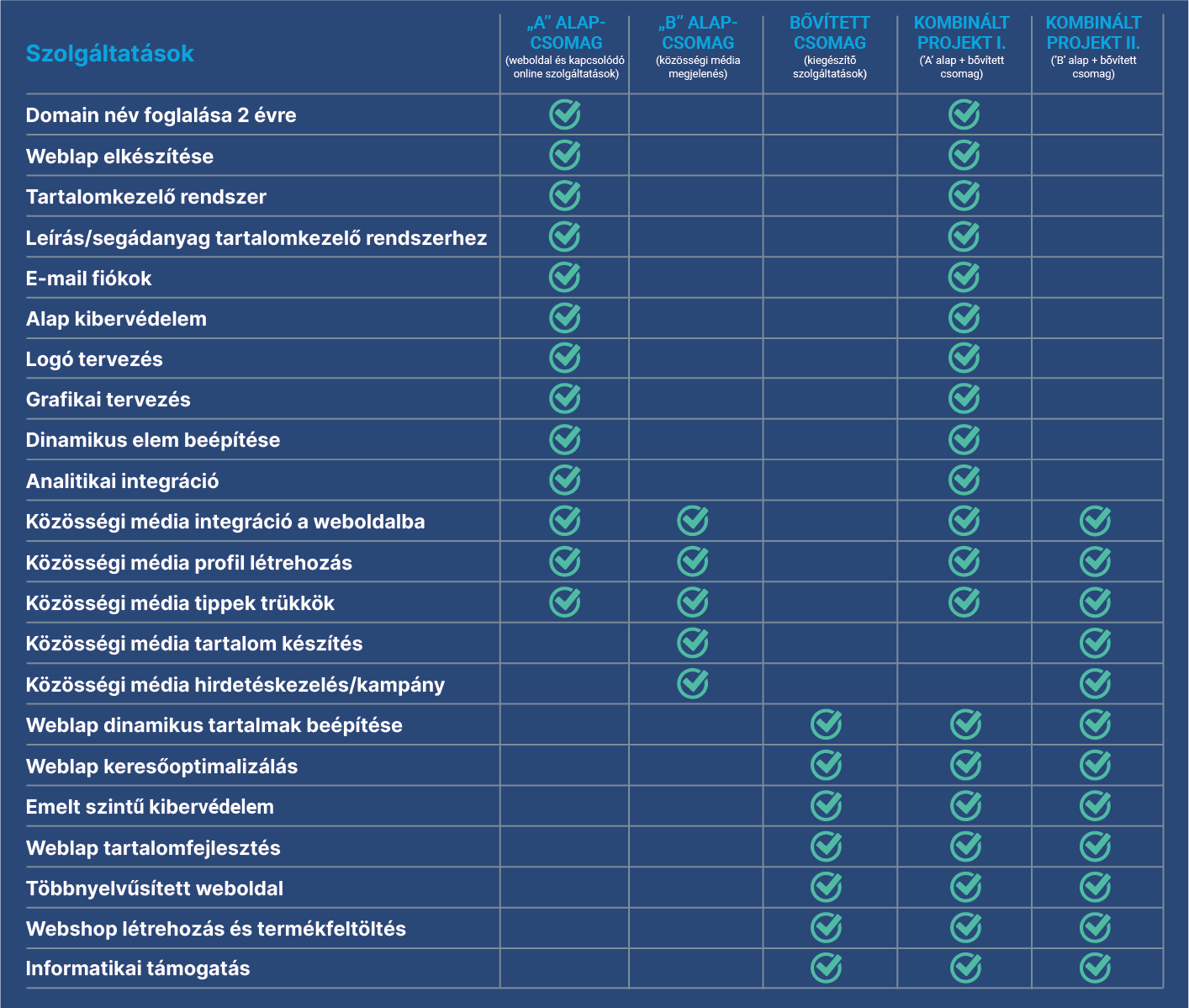 Az alábbi csomagok elérhetőek: