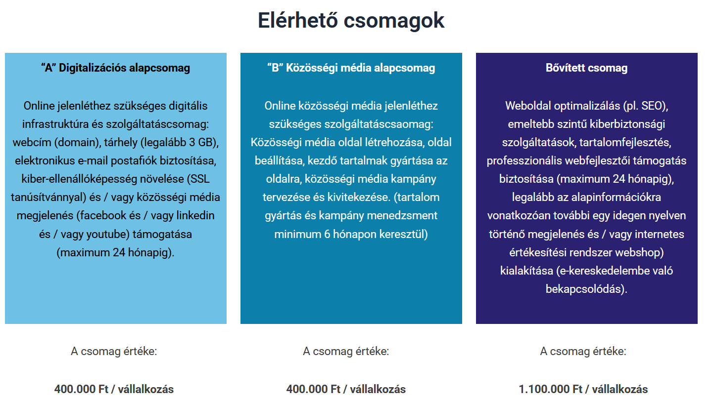 A „Minden vállalkozásnak legyen saját honlapja” Program egy utalványrendszerű program, amely 9 milliárd forint keretösszegből támogatja a KKV-szektor weboldal fejlesztéseit, megerősítve ezáltal online jelenlétüket és e-kereskedelmi tevékenységüket. Hazai mikro- és kisvállalkozások internetes jelenlétét növelő programban pályázati úton kiválasztott és védjeggyel megkülönböztetett elektronikus hírközlési szolgáltatók, illetve vállalati infokommunikációs szolgáltató cégek, valamint professzionális honlapkészítő ügynökségek szolgáltatásait vehetik igénybe magyar székhelyű, köztartozásmentes, minimum egy fő létszámmal bíró, mikro-, kisvállalkozások (beleértve az egyéni vállalkozások), akik még nem rendelkeznek honlappal, vagy inaktív az internetes felületük. A programra 2024. december 11-től lehet jelentkezni a vállalkozásoknak.